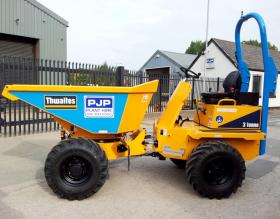 The 3 tonne Thwaites Alldrive Power Swivel dumper has the same features as a standard dumper with the added benefit of a power swivel function which makes it ideal on jobs where turning space is limited. These dumpers would be ideal on highway jobs as the load can be directed through 180 degrees.